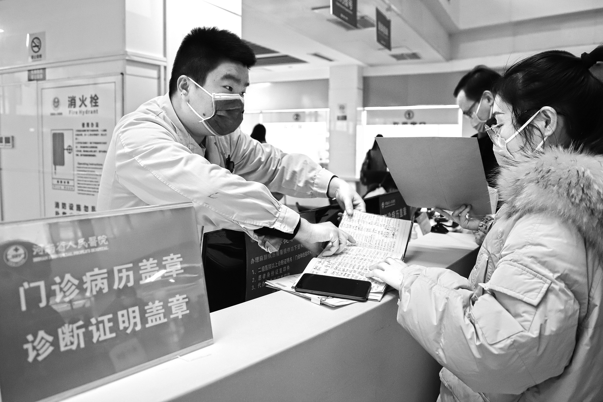 12月8日,在河南省人民医院门诊西区一楼大厅的患者服务中心,工作人员对前来办理业务的患者进行指导。河南省人民医院设立患者服务中心,涵盖医保政策咨询、病历资料复印盖章、投诉等功能,还为患者提供轮椅、平车(推车)、包裹寄存等便民服务,为门诊和出入院患者提供“一站式”综合服务,提升医疗服务质量,践行“我为群众办实事”。 冯金灿 史 尧/摄