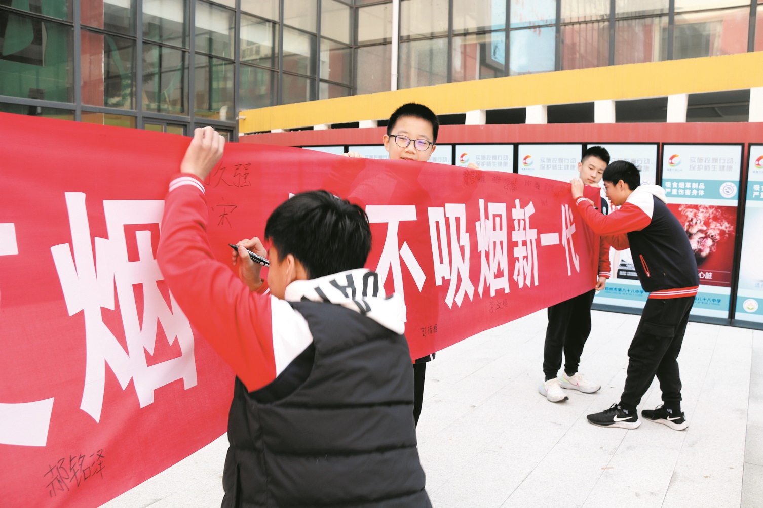 郑州市第八十八中学举行学生禁烟签名仪式
