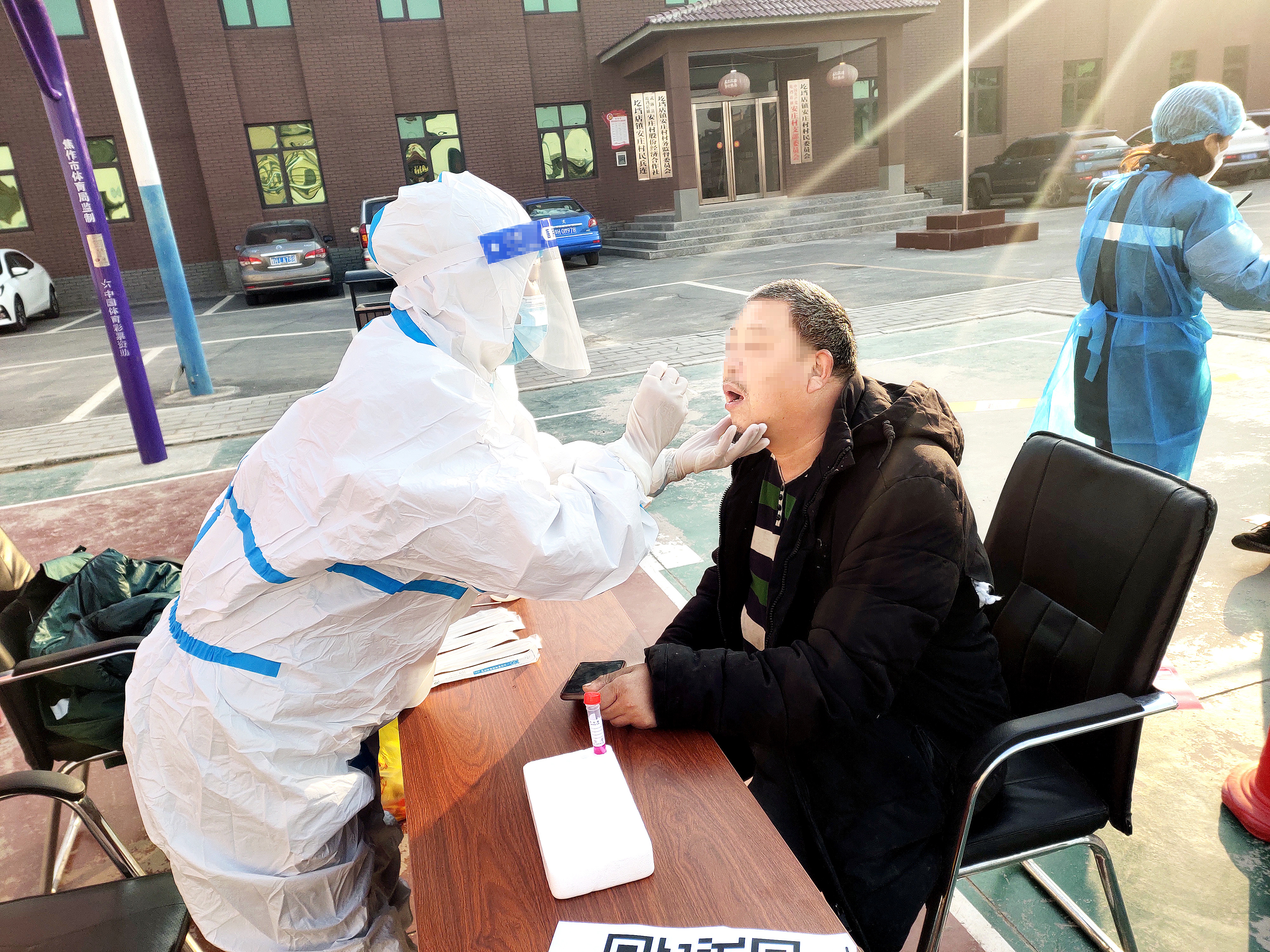 12月22日,在武陟县圪垱店镇,圪垱店卫生院医务人员正在为群众进行核酸检测。武陟县在15个乡镇(街道)同步开展全员核酸检测演练,采样点覆盖高校、建筑工地、企业、商场、超市、社区、农村等,累计采样3000余人次,进一步提高全员核酸检测的组织实施能力,扎实做好疫情防控及应急准备工作。