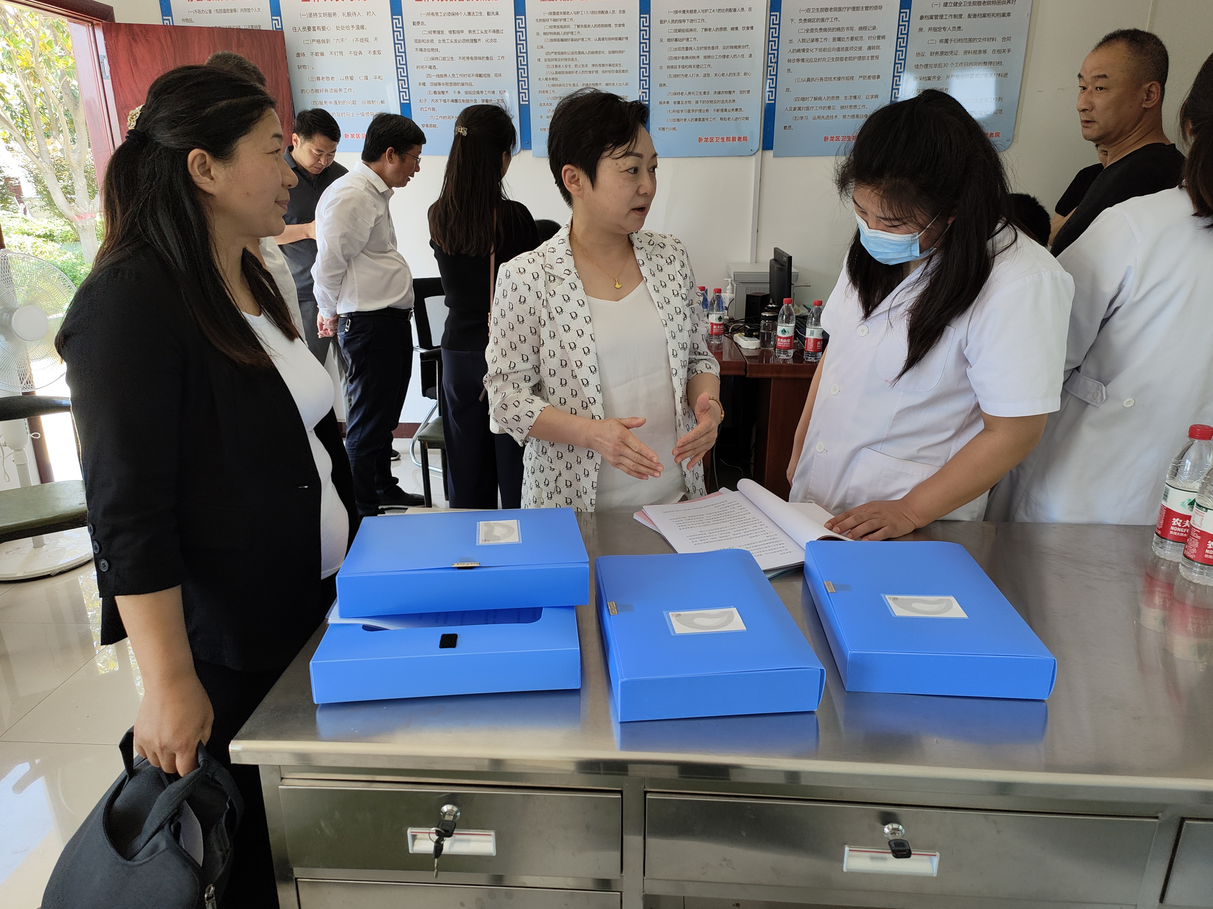 近日,河南省医养结合示范区创建工作第三审核组到南阳市卧龙区潦河镇卫生院敬老院检查医养结合开展情况。审核组深入敬老院食堂、老人住室、医务室、花园等处,实地查看日常工作开展情况,随后在医务室认真翻阅相关资料,详细询问医务人员日常诊疗活动开展情况等。根据《关于推荐第一批医养结合示范县(市、区)和示范机构的通知》和评审工作安排,河南省卫生健康委联合省民政厅于近期在全省范围内开展了医养结合示范县(市、区)和示范机构现场评审工作。