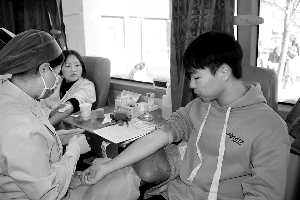 近日,在商丘医学高等专科学校,学生在无偿献血。当天,商丘市中心血站联合商丘医学高等专科学校开展无偿献血科普宣传进校园活动,展现了大学生对生命的关爱,彰显了当代大学生对社会的责任担当。