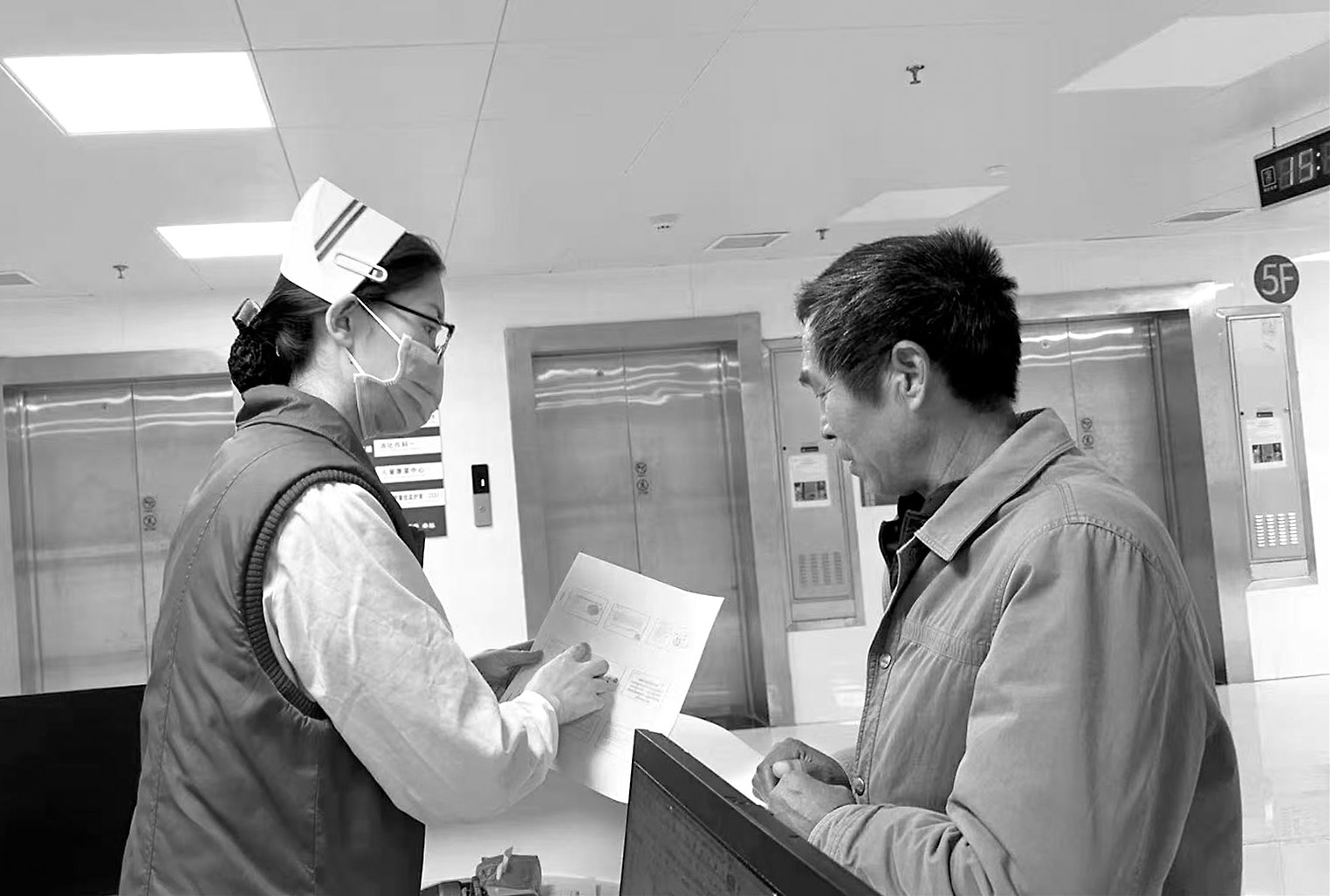 护士为患者讲解“出院指导”卡片