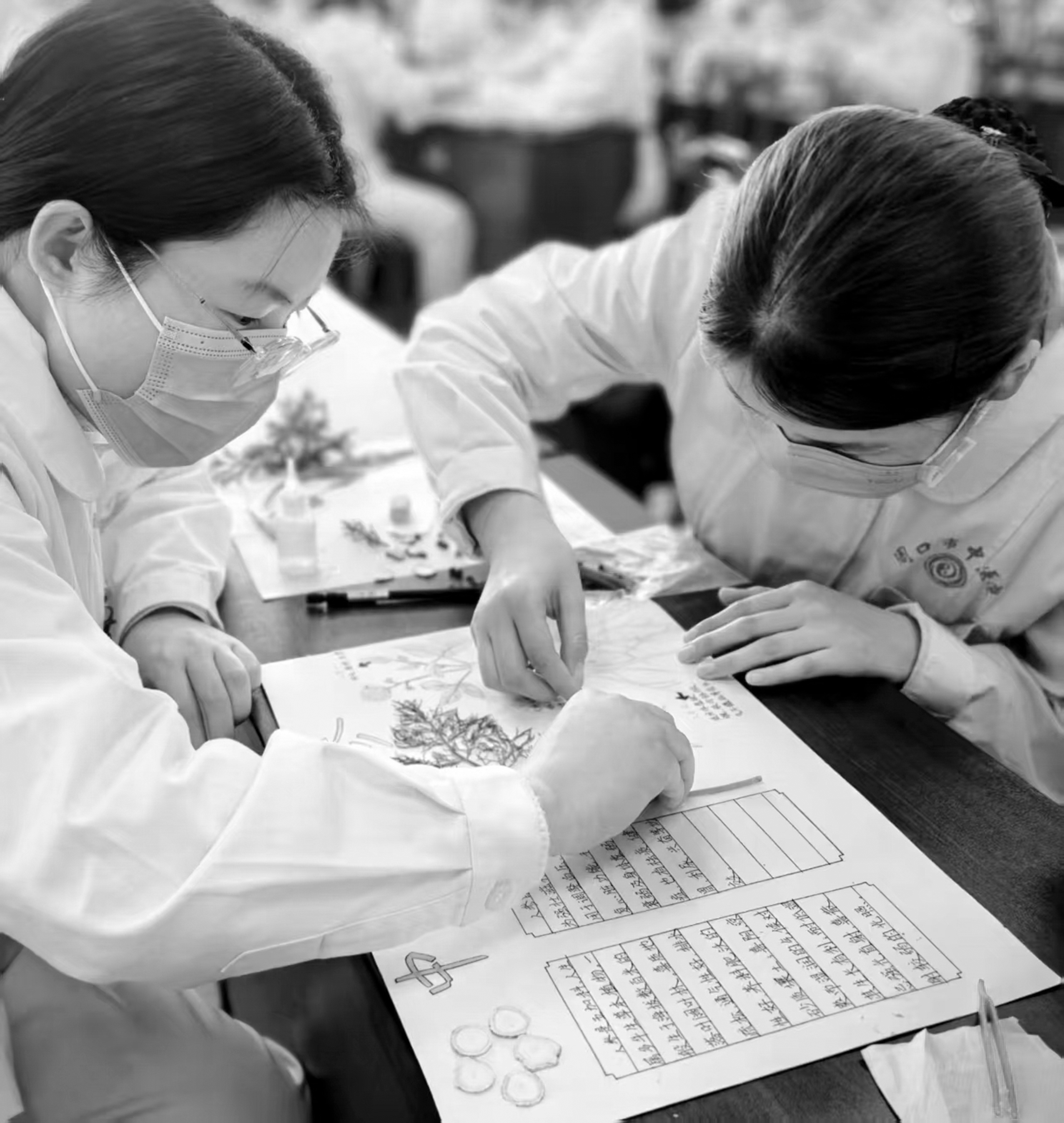 ↑近日,在周口市中医院,护理实习生正在进行中药贴画活动。周口市中医院护理部举办“本草凝香入画境,护理初心践传承”创意活动,引导护理实习生在亲手触摸、辨认和运用药材的过程中,深化对中药形态、药性及价值的理解。 侯少飞 赵文博/摄