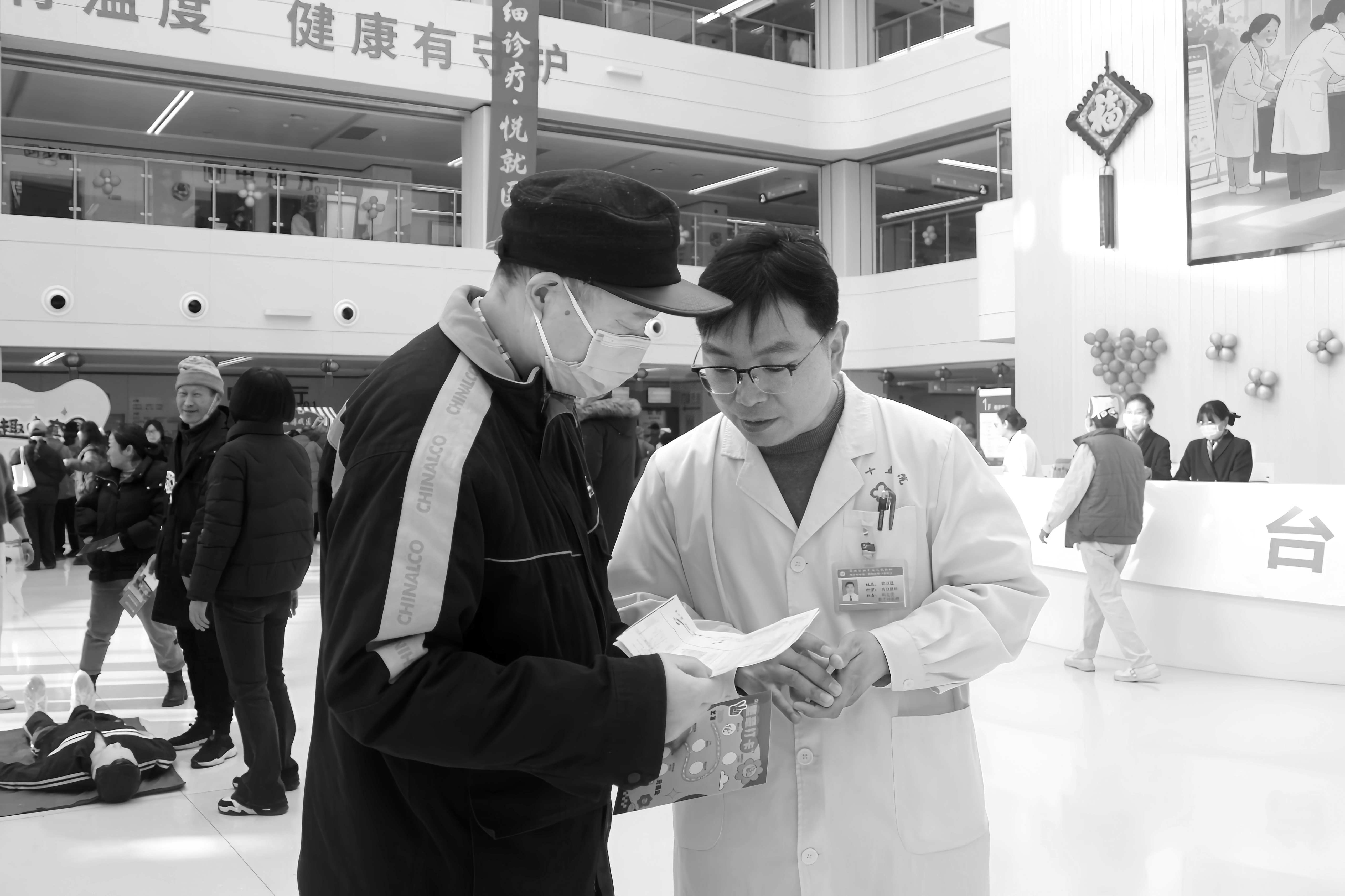↑2月4日,在郑州市第十五人民医院的门诊大厅,医务人员为群众解答健康问题。当天,该院开展义诊活动,把专业的健康服务送到群众身边。