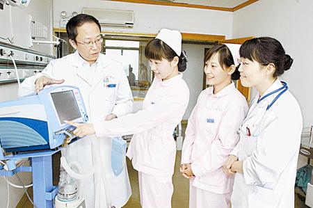 河南省胸科医院在开展“医疗质量万里行”活动中,以持续改进质量、保障医疗安全为主题,围绕16项重点工作,细化工作标准。图为医院重症监护室工作人员正在进行操作培训。 张 毅 祖 曼/摄