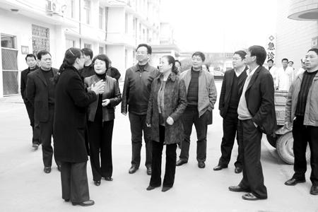 省卫生厅秦省副厅长(中)到卫辉市视察农村卫生工作,对该市的环境卫生综合整治工作表示肯定。