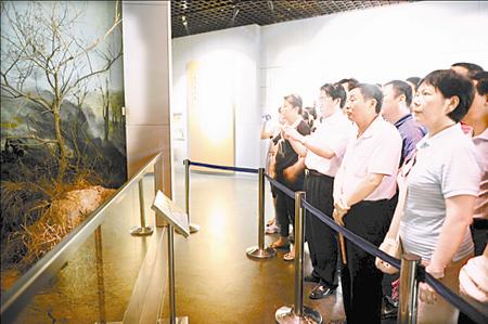 先进职工和党务工作者在台儿庄纪念馆内参观展品。