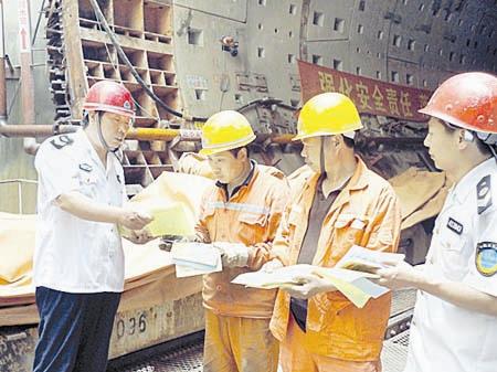 夏季是食物中毒和食源性疾病的高发季节,为提高建筑工人的食品安全意识,温县卫生监督所开展了为期7天的“走进建筑工地,确保农民工夏季食品安全”活动。图为该所卫生监督人员走进南水北调建筑工地,向建筑工人发放食品安全知识手册,宣传食品安全知识。 王正勋 郑保华/摄