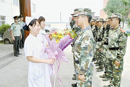 7月29日上午,在“八一”建军节前夕,邓州市第三人民医院对50余名消防和武警官兵进行了免费健康体检。之后,该院院领导率领医务人员组成的慰问团,先后到市消防大队、武警中队进行慰问,与广大官兵共叙鱼水深情。 刘小飞 乔当归/摄