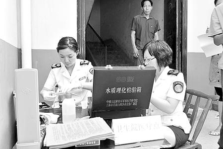 7月31日,内乡县的医务工作者在赵店乡聂岗村为受灾群众提供免费医疗服务。由于卫生防疫措施得当,目前,该县受灾地区没有发生疫情。 张中立 黄 立/摄