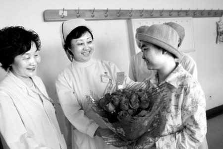 向出院患者赠送鲜花