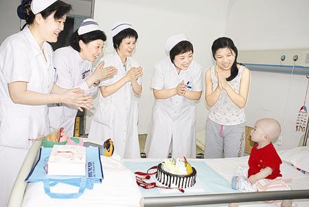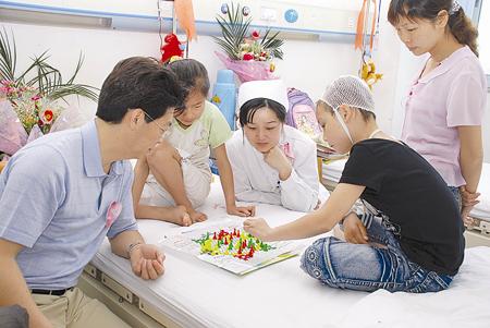 医院领导到病房探望接受免费救助的先天性心脏病小患者