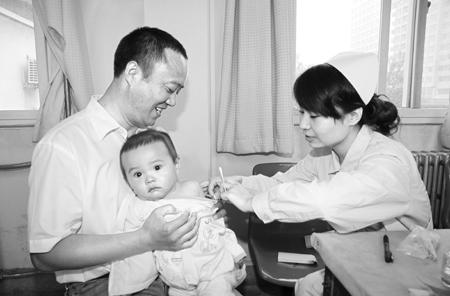 本报讯(记者 张晓华)9月11日是麻疹强化免疫接种的首日,郑州人民医院门诊大厅一大早就排起了长龙。近百名家长带着宝宝,7点多就来排队等候接种疫苗。 9月11日,各个开展麻疹疫苗接种的医院俨然成了孩子们的天下。一走进郑州人民医院门诊大厅,就能看到醒目的“积极响应政府号召,开展好麻疹疫苗强化免疫活动”条幅。大厅西侧的接种等候区、接种预检分诊处、接种区、接种观察区,到处都是孩子们的笑脸或“哭脸”。负责麻疹疫苗接种工作的几十名医护人员忙得马不停蹄。 据了解,郑州人民医院预防保健科只有6名工作人员,其余人员都是从其他科室临时抽调来的。预防保健科科长王素倩告诉记者,该院8月底就成立了院长挂帅的领导小组、预防接种组、异常反应鉴定组,开始从各个科室抽调人员。急诊科、小儿科、门诊等各个科室的30多人加入进麻疹强化免疫队伍,真可谓“全院总动员”。由于准备充分,该院9月11日顺利完成了400多名儿童的接种工作。 同样,在郑州大桥医院,当天的麻疹疫苗接种也是“盛况空前”。该院预计首日为1800名儿童接种,实际上却来了2000多名孩子。幸好该院准备充分,光是接种人员就有40多名,另有近20名导医和行政后勤人员负责疏导人群、维持秩序。该院计划免疫科科长李晓昱告诉记者,医院共有300余名职工,参加麻疹强化免疫的就有60多名,内科、外科、妇科、产科等科室的护士,几乎全员上阵。 记者在这两家医院了解到,前来接种麻疹疫苗的家长都很积极配合。当天,世界卫生组织官员David在开封县的强化免疫接种现场也表示,这次强化免疫准备充分,群众非常理解和支持,现场组织到位,他对这次麻疹强化免疫工作的圆满完成充满信心。