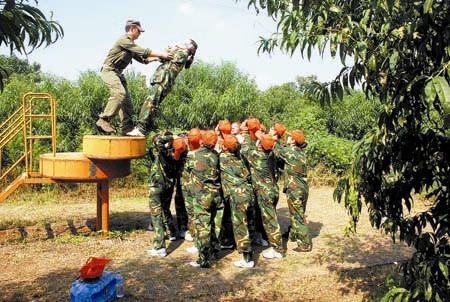 鹤煤二院近日对90多名专业技术骨干进行了拓展培训。图为信任背摔训练现场。 毛晓凤 张治平/摄