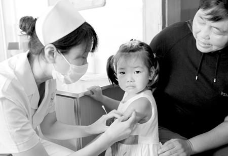 9月11日上午,平顶山市第一人民医院,一名小朋友正在接受麻疹疫苗接种。 方 尧 王平/摄