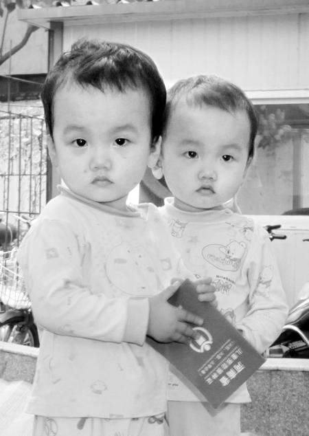 郑州大桥医院门口,一对手拿接种证等候接种的双胞胎。 张晓华/摄
