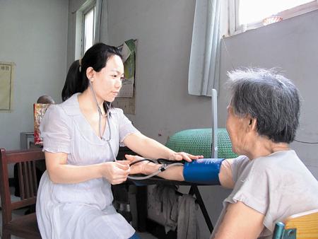 中秋将至,安阳地区医院医护人员近日带着月饼等礼物,来到空巢老人家中慰问,并为老人检查身体。