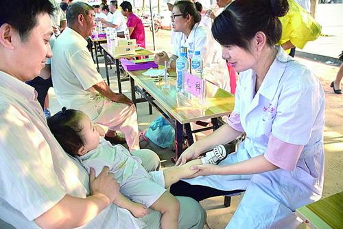 7月26日,温县中医院医务人员在为患儿义诊。 侯林峰/摄