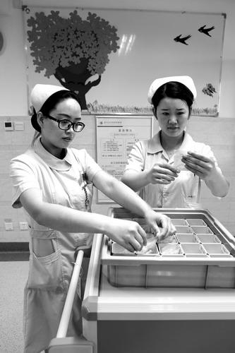 8月4日9时21分,驻马店市精神病医院的两位护士正在配药。