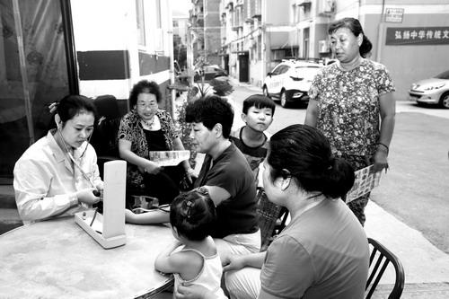 8月10日,焦作市解放区计划生育技术服务人员在为群众体检。连日来,解放区卫生计生委组织计划生育技术服务人员深入社区开展服务活动,宣传计划生育政策,受到了群众的欢迎。王中贺/摄