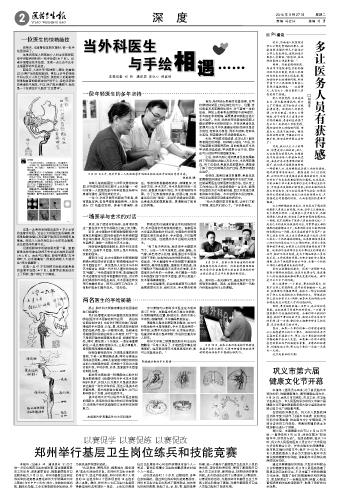 简单几笔就能画出人体甲状腺结构简图,并将图纸放在自己脖子上比对着……郑州市第一人民医院普外科年轻医生杨林与患者沟通时,爱用这样的方式。 一位53岁的双侧甲状腺结节患者,患有高血压病、室性早搏等基础疾病,入院后进行CT检查后发现,患者气管偏移、受压。考虑到患者基础疾病多,病情复杂,对治疗方法、手术方式、手术风险和预后一无所知,若医患沟通不到位,手术很难顺利开展。为了让患者消除戒备、恐惧心理,杨林拿出自己的“绝活”,手绘甲状腺结构简图,让患者及其家属更直观、更清晰地了解自己的病情。 首先,杨林结合患者的检查结果,在甲状腺结构简图上标注病灶的大小、位置,告诉患者及其家属病灶很大,对气管有一定的压迫,再加上患者有长期颈部不适等症状,手术指征非常明确,需要患者积极配合进行手术治疗。然后,杨林在甲状腺结构简图上画出需要手术切除的部分,并告诉患者及其家属可以在术中快速确定切除的肿块是否为良性,若肿块为良性,则手术结束;若肿块为恶性,则需要进行甲状腺癌根治术。 术后,甲状腺功能减退,该怎么办?面对患者提出的问题,杨林耐心地说:“术后,您可能需要长期服用药物,目的就是治疗术后甲状腺功能减退、甲状腺素分泌不足,同时还可以预防甲状腺癌复发等。” 之后,杨林又耐心地向患者及其家属解释了甲状腺的功能以及手术中、术后用药情况。听了这些话,患者及其家属表示,清楚地了解了自己的病情及治疗过程,愿意积极配合治疗。 杨林说,医患沟通非常重要,患者及其家属都想详细地了解病情和手术治疗方案,这就需要医生创新医患沟通方法。自从走上工作岗位以来,他坚持每做一台手术,都用手绘图的方式与患者沟通,图文并茂地为患者讲解术前思路、术中发现和术后处理等,并将手绘图保存到患者的病历中。 “杨大夫画的图非常直观,让我们了解了病情,更让我们安心了。”许多患者说。