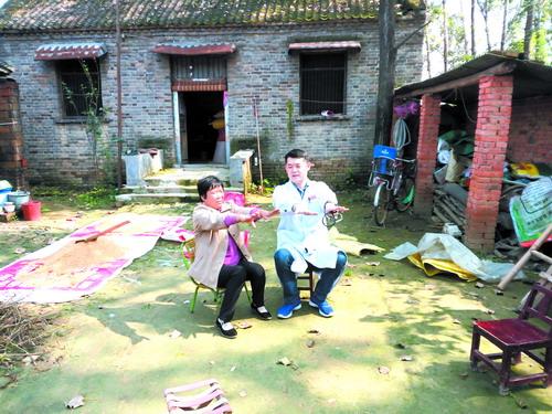 10月17日,西平县人民医院医务人员在芦庙乡八里庄村贫困户家中义诊。当天,该院医务人员先后深入芦庙乡、蔡寨乡等乡镇,义诊200多人次,并与20个贫困家庭签订了健康服务协议。吴原启 吴 佳/摄