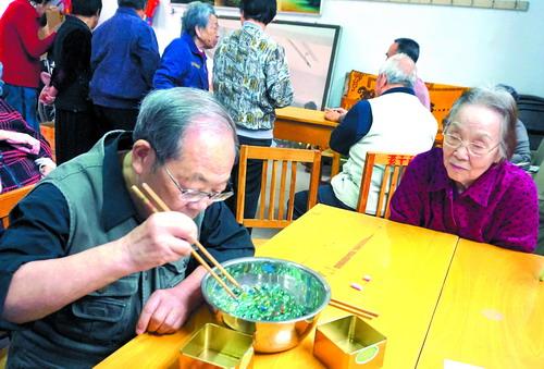 10月9日,一位老先生在安阳地区医院集中精力用筷子夹起玻璃球。当天,该院老干部科组织了一场特别的运动会,老人们参加了夹玻璃球、套圈儿、打保龄球等趣味运动项目。李玉英/摄