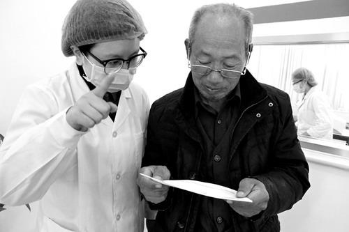 10月15日,在新乡县古固寨镇祥和社区卫生服务中心样本采集室内,工作人员耐心地为崔老先生讲解检查结果。当天,69岁的崔老先生一大早就来做化验,等待15分钟后取回了检验报告单。新乡医学院第三方医学检验中心积极为周边的乡镇卫生院、社区卫生服务中心和村卫生所(室)等基层医疗卫生机构提供医学检验服务,使群众在家门口就能够以社区收费标准享受到三级甲等医院的技术检验服务。崔 静 吕 浩/摄