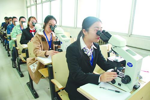 技能操作是每次大比武最有看点的环节,也是参赛选手拉开差距的关键。问及技能操作考核的重点时,大比武主考官们的答案基本一致:“题目不难,重在合规操作、重在细节。”于是,沉着冷静、遇乱不慌、技能熟练成为优秀选手共同的特点;既懂理论又会操作,是选手们获胜的法宝。 10月23日下午,大比武的寄生虫病防治现场(蠕虫制片考场)突然传来阵阵异味,经过的人员或加快脚步,或掩鼻通过,可每一位参与制片的选手却从容面对、细致操作。 “蠕虫制片就是粪样制片,考核重在制片考核过程及操作,最重要的就是规范。”本次大比武的主考官、河南省疾病预防控制中心寄生虫病防治所蠕虫病防治科邓艳说,考核打分细致到选手每一次的无菌操作、粪样是否填满了定量板的全孔、制片时标本是否刮平、操作中是否改变粪模形态等细节。 “这个现场其实就是我们日常工作的真实再现。”邓艳说,制片人员的每一步操作都是为了让读片者正确读取,考核的是熟练程度以及相互之间的默契和配合。