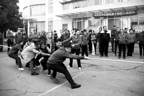 11月2日,洛阳市中心血站干部职工在进行拔河比赛。当天,洛阳市中心血站141名干部职工参加了击鼓颠球、背球接力、拔河等项目的比赛,增进了职工之间的合作意识和友谊。刘永胜 郑备战/摄