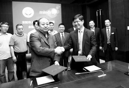 安阳市人民医院院长马绍恒与深圳迈瑞生物医疗电子股份有限公司代表签约 靳志强供图