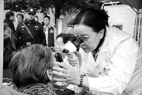 义诊中的国管眼科专家、河南科技大学副校长雷方