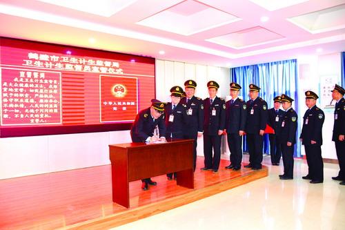 ②宣誓后,鹤壁市卫生计生监督局全体监督员在誓词上签名。
