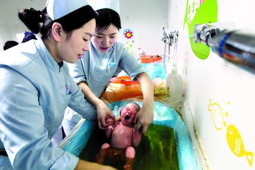 1月20日,郑州大学附属郑州中心医院产科二病区医务人员在为新生儿进行中药浴。去年5月,该病区率先在全院开展新生儿药浴、产妇足三里穴位封闭等具有中医药特色的服务,并在当年9月重新装修了病房,以温馨的环境和特色服务吸引了众多产妇。史 尧/摄