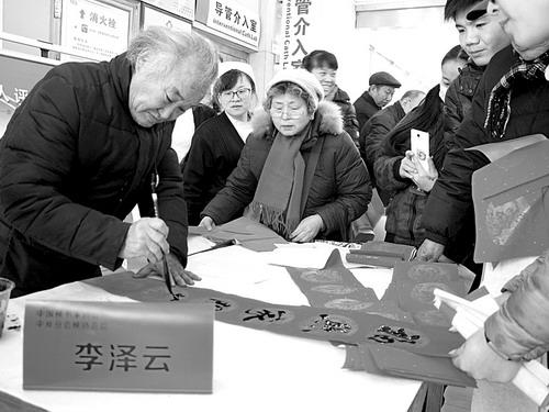 近日,郑州市第一人民医院门诊楼大厅里笔墨飘香,人头攒动。该院邀请中国书法家协会会员免费为患者书写对联。一位患者家属高兴地说:“现在,春联都是印刷品,年味儿都淡了。医院举办‘迎新春,送春联’活动,让我重新找回了过年的味道。” 李 季 王占锋/摄