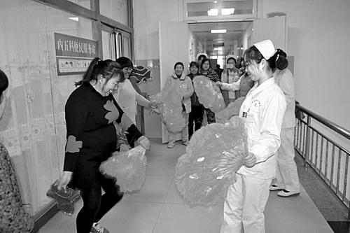 河南省原阳县人民医院为了加强对职工职业道德教育培训,提高员工整体素质,开展了“我为病人办好事”活动,赢得社会好评。图为春节期间,该院病人家属主动与医护人员在病房联欢。 石耀祖 孟庆远/摄 |