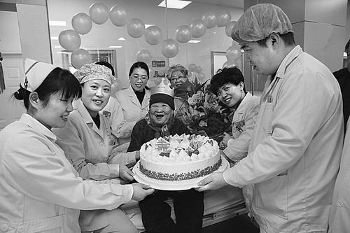 百岁老人杜景桂为目前南阳市第一人民医院肾内科临床治愈的年龄最大的尿毒症患者。2月9日(农历正月十三)这天,杜景桂老人迎来百岁寿辰。她的病房内喜气洋洋,花香四溢,该院医护人员和老人、家属齐聚一堂,共祝老人生日快乐! 任 炜 方 圆/摄