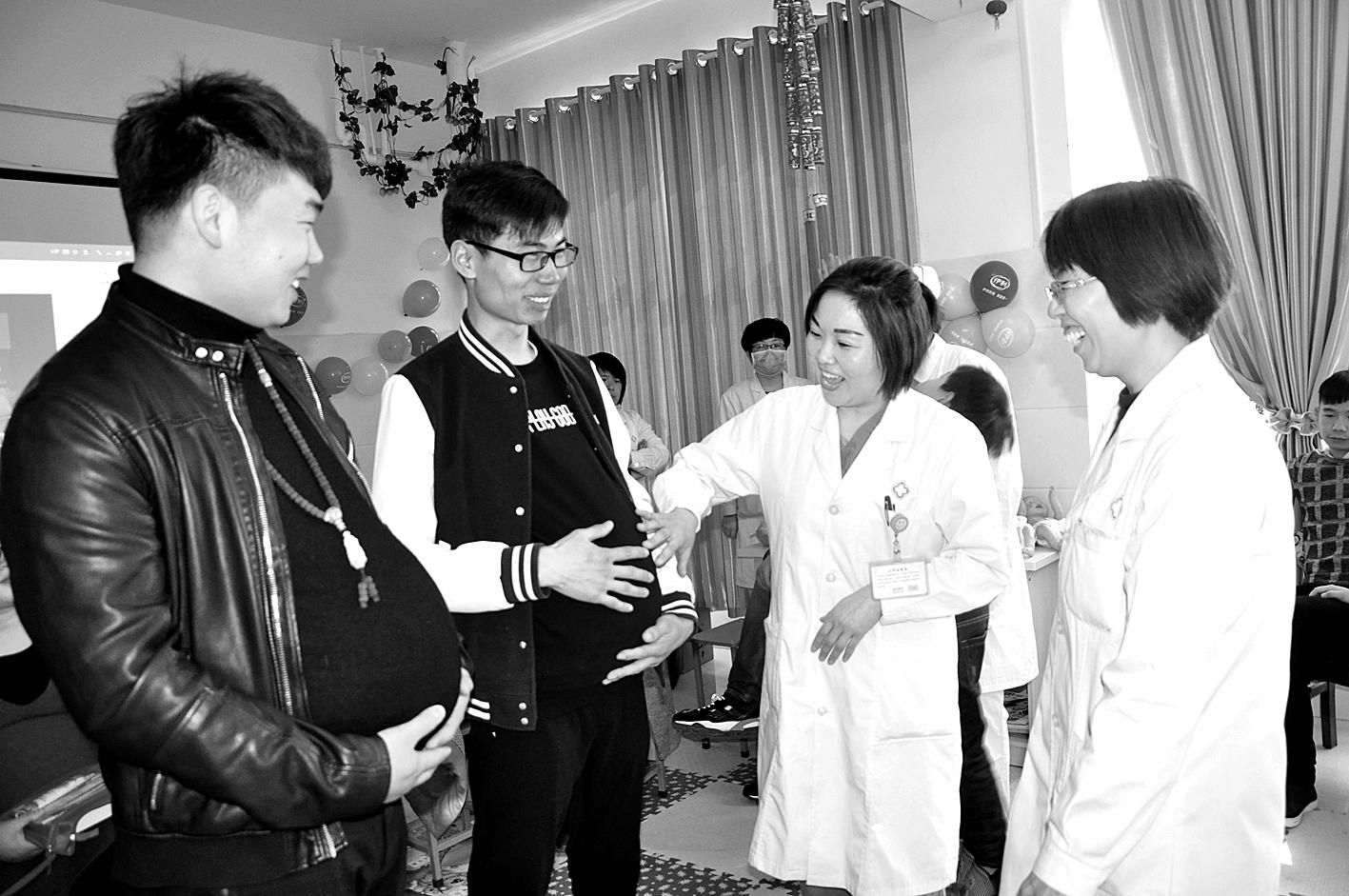 日前,武陟县第二人民医院孕妇学校开展联谊活动,邀请准爸爸们前来参加。许多准爸爸在体验孕妈妈艰辛的怀孕过程后,深有感触。 王正勋 侯林峰 赵 丽/摄
