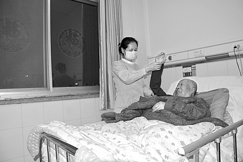 昨日,南阳市86岁的王老先生在南阳市中医院脑病专科体验了医养结合治疗康复服务。据了解,去年11月,王老先生因患脑血栓住进了该院,体验到医养结合治疗康复的好处后,就把这里当成了自己的家。 方 圆 胡继席 李 政/摄