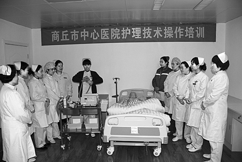 近日,商丘市中心医院护理部分别对全院护士进行了心肺复苏、心脏电除颤、吸痰等多项急救操作培训。通过此次操作培训,该院提高了护理人员应对突发公共事件的能力。 赵忠民 席 军/摄 |