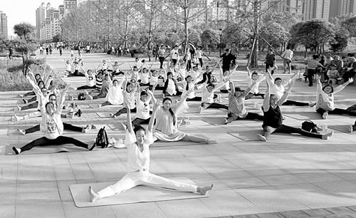 近百位孕妇在老师带领下,调整呼吸,进入“瑜伽”模式……近日,许昌市妇幼保健院举办了“让孕动走向自然,让分娩回归自然”的公益活动。 王正勋 侯林峰 王松伟/摄