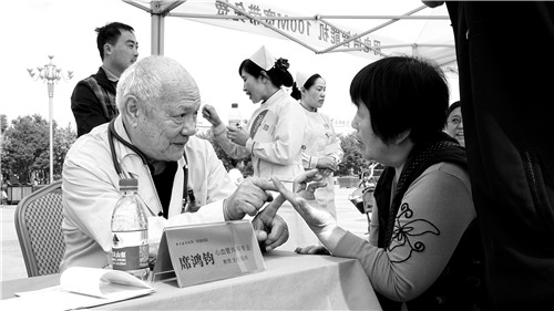 ↑5月6日上午,新乡医学院第一附属医院在鹤壁市淇滨区新世纪广场举办了“百年名院,百名专家”大型义诊活动,年近八旬的老专家席鸿钧也加入义诊大军,为前来咨询的群众看病。据悉,此次参加鹤壁义诊的专家和教授共有102人,涵盖32个专业。 段桂洪/摄