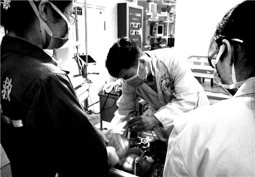 本报讯 执勤保安推车,医生边跑边为女子实施心肺复苏术,医院开辟“绿色通道”。为了挽救女子的生命,大家争分夺秒,上演了一场现实版的“生命时速”。5月9日上午,在驻马店市中心医院门诊楼附近,一名女子突然倒地,昏迷不醒。该院保安巡逻时发现后,及时向医护人员求助。昨天下午,该女子已被转入ICU(重症监护室)。 “我正在医院附近巡逻,突然看到前面有一名女子倒在地上。”昨天上午11时许,在驻马店市中心医院门诊附近执勤的保安班班长李风旺对记者说,看到女子昏迷,他急忙拨打了120,并通知其他保安赶快向医院急诊中心求助。 “当时,那名女子脸色发紫,口吐白沫,情况非常紧急。”驻马店市中心医院急诊科值班医生王宇琛说,她和护士接到求助后,迅速推着担架车跑到现场。王宇琛经过初步检查,发现该女子由于疾病引发了心跳骤停,必须急救。 “快,我们帮忙把病人抬到推车上!”路过此处的驻马店市中心医院党委书记吴杰美喊道。她和大伙儿一起将女子抬上担架。为了挽救女子的生命,医院为其开辟了“绿色通道”。记者在该院监控室看到:上午11时4分46秒,众人将女子送往医院。一路上,执勤保安在前方开道,医生王宇琛边跑边为女子做心肺复苏术。11时6分13秒,急诊中心的大门打开,女子被推进去抢救。 昨日,记者见到该院保卫科科长王卫华,他一直保管着女子摔倒时扔在路上的钱包。“包内有证件和3000多元现金等。”王卫华说,他已经通过包内的证件和手机,联系上女子的家人,对方正往医院赶来。 1个多小时后,倒地女子的女儿和丈夫从西平县赶到了驻马店市中心医院。“请你们保住我妈的命。”她的女儿哭喊着说。原来,倒地女子姓石,今年60岁,家住西平县环城乡。石女士因患有肾病、糖尿病等,曾在市区医院治疗过。出院不久,她再次感觉身体不适。当天,她准备去医院做检查,不料,还没有进医院大门就倒在地上了。 近日,记者从驻马店市中心医院了解到,石女士已经被转入ICU,继续观察治疗。