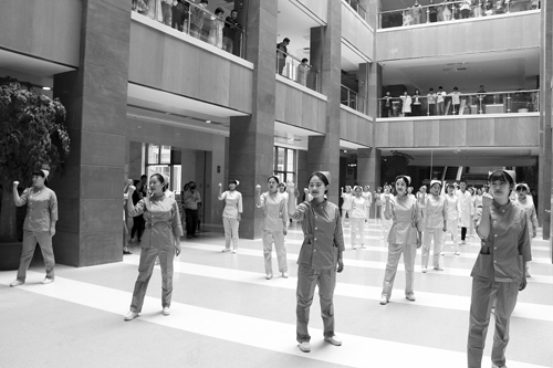护士节当天,许昌市立医院的年轻医务人员在该院一楼门诊大厅举行了快闪活动。活动中,穿着不同颜色护士服的护理人员从大厅四周逐渐汇聚到大厅中央,活泼动感的舞姿,充满了青春的活力,吸引了许多群众围观。 王正勋 侯林峰 邹会英/摄