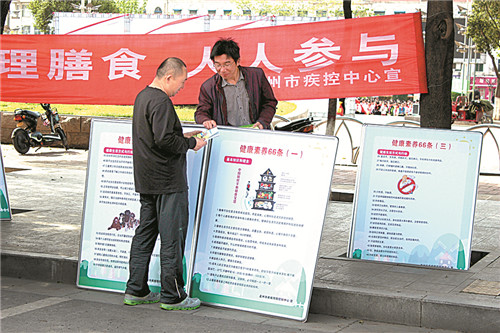 日前,孟州市卫生计生委、孟州市疾控中心在市海尔广场举办了以“合理膳食,人人参与”为主题的“健康中国行-合理膳食”宣传教育服务活动,引导群众关注合理膳食,健康饮食。 王正勋 侯林峰 李 丽/摄