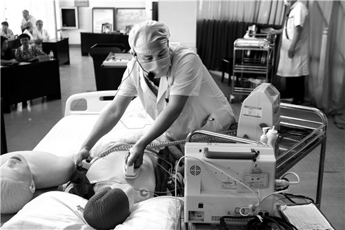 →病情就是命令,赛场就是战场。近日,宜阳县中医院举办急救技能大比武活动。14个科室的代表队依次登场,分别展现出扎实的急救基础理论知识和娴熟的急救技能。 刘永胜 刘彤辉/摄