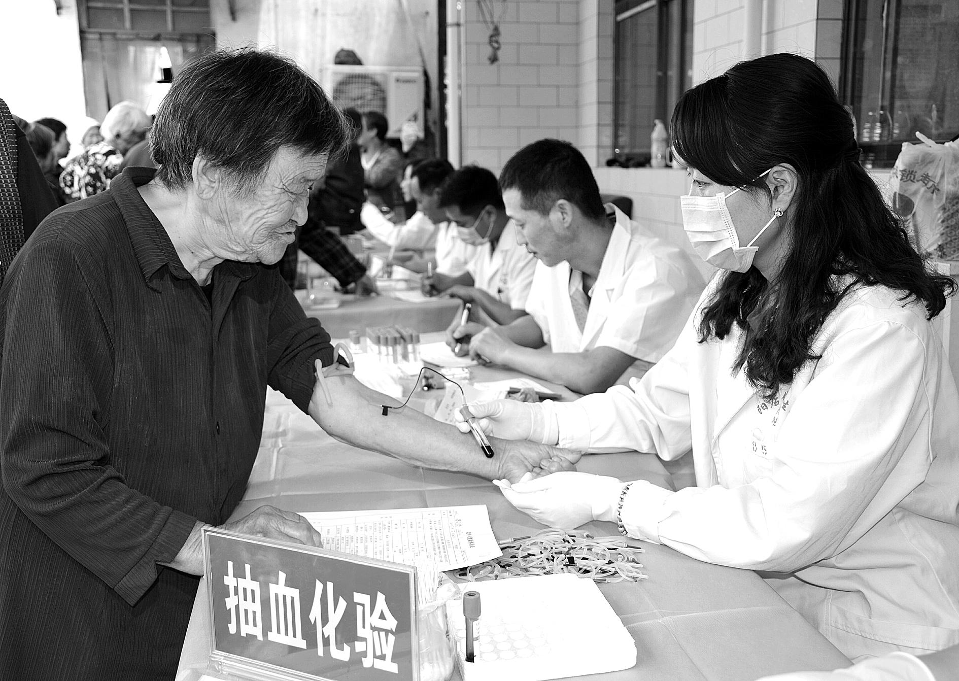 5月24日,灵宝市阳店镇卫生院医务人员来到阳店村,为65岁以上的老年人进行免费健康检查;同时将体检中发现的高危人群、慢性病患者及时录入电子健康档案,以便定期进行随访。 刘 岩 彭红勇/摄