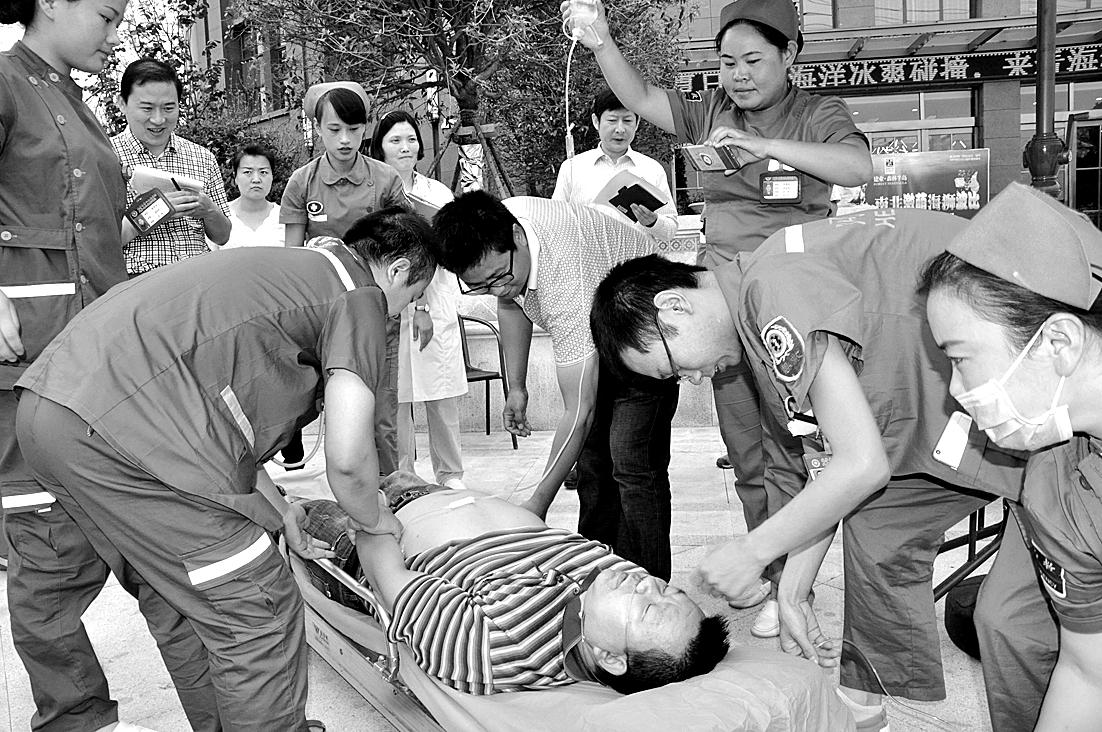 为了检验医务人员对急性胸痛患者的应急处置能力,武陟县第二人民医院胸痛中心日前在仰韶公园开展了一次胸痛患者接诊与救治模拟演练。整个模拟演练快速、高效、及时,环环相扣。 王正勋 侯林峰 赵 丽/摄