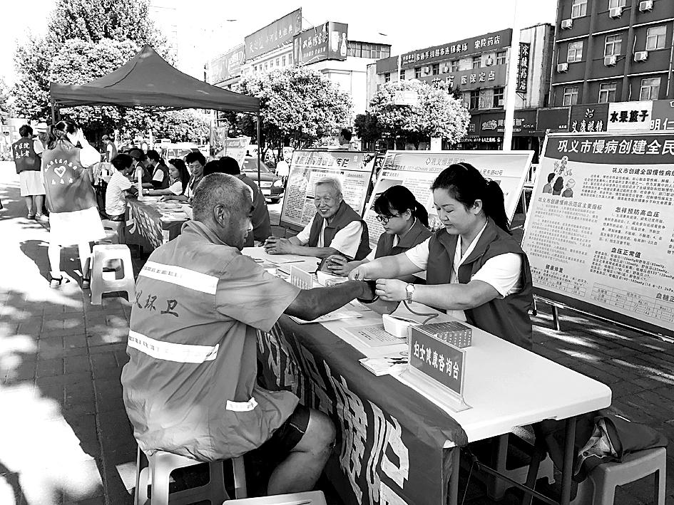 近日,巩义市卫生计生委组织巩义市人民医院、市中医院等9家医疗卫生机构和计划生育服务站,在宋陵公园北门广场开展了宣传义诊活动。 杨 须 曹振军/摄