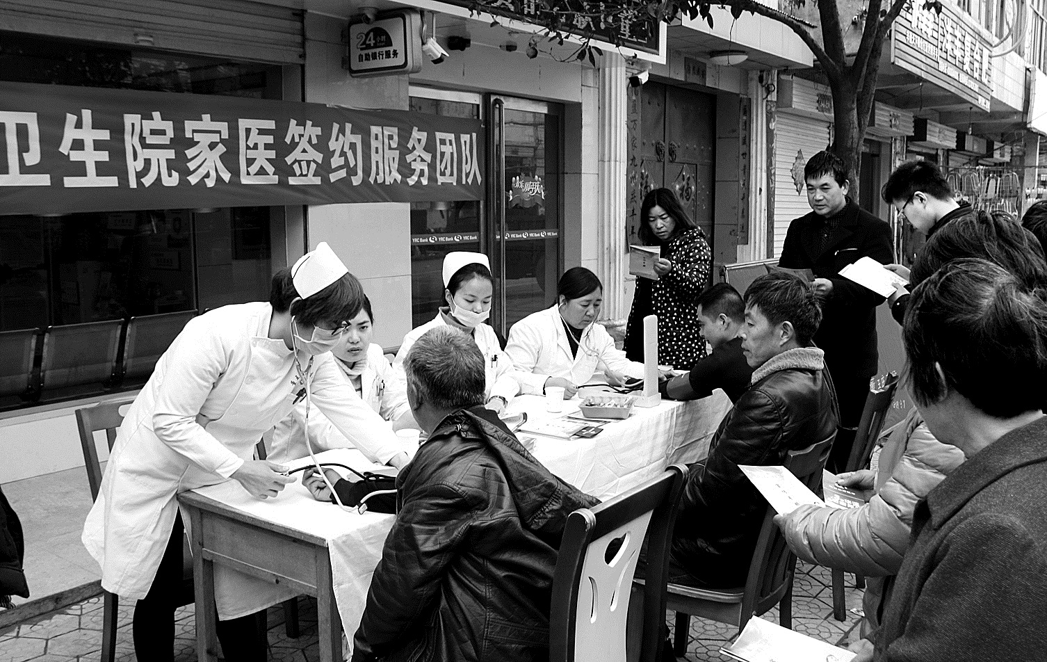 眼下,家庭医生签约服务在宜阳县董王庄乡开张得如火如荼。据悉,该乡1505贫困户已全部签约,普通农户签约也正在进行之中。图为董王庄乡卫生院与宜阳县农商银行董王庄支行在该乡联合开展家庭医生签约服务宣传时的情景。 李兴立 赵军平 周国辉/摄